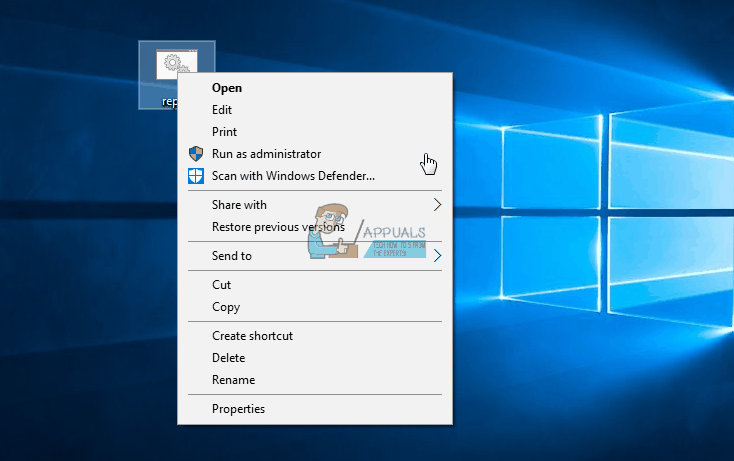 - Navigate to where you saved the .BAT file, locate it, right-click on it and click on Run as administrator. The .BAT file will open an elevated Command Prompt, execute each of the required commands and then close the elevated Command Prompt, so all you need to do is wait.