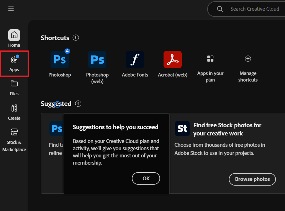 - Open the Adobe Creative Cloud app.