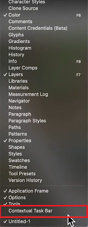 To enable it: Open Photoshop > Go to Window > Contextual Task Bar.