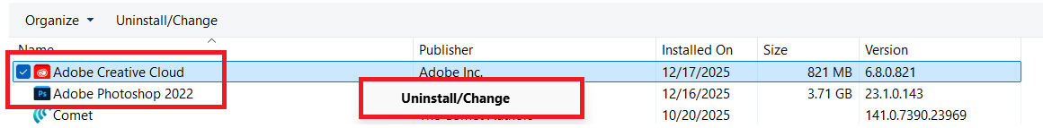 - Uninstall Adobe Creative Cloud and Photoshop.